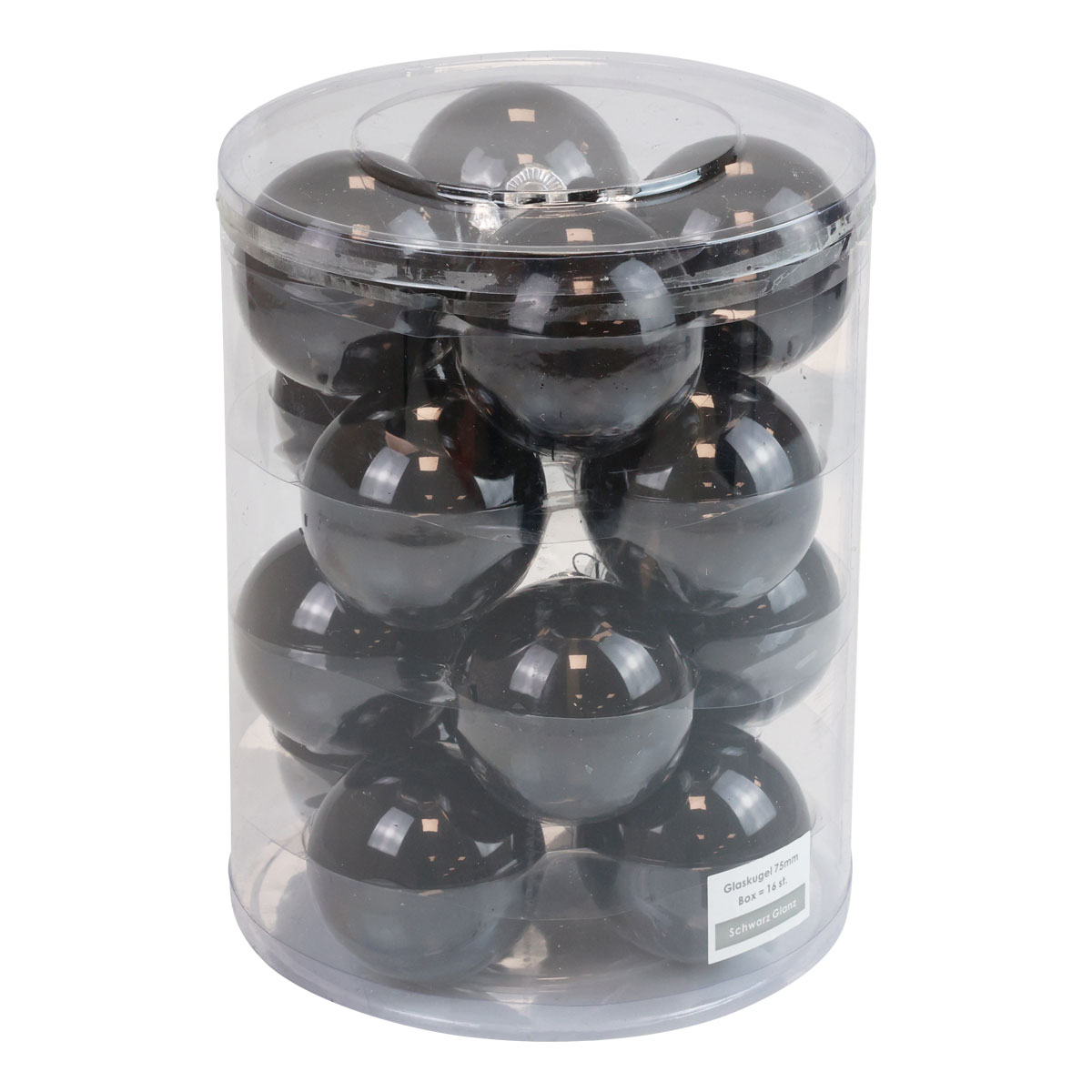 Karácsonyi labdák üveg fekete fa golyók fényes Ø7,5cm 12 db