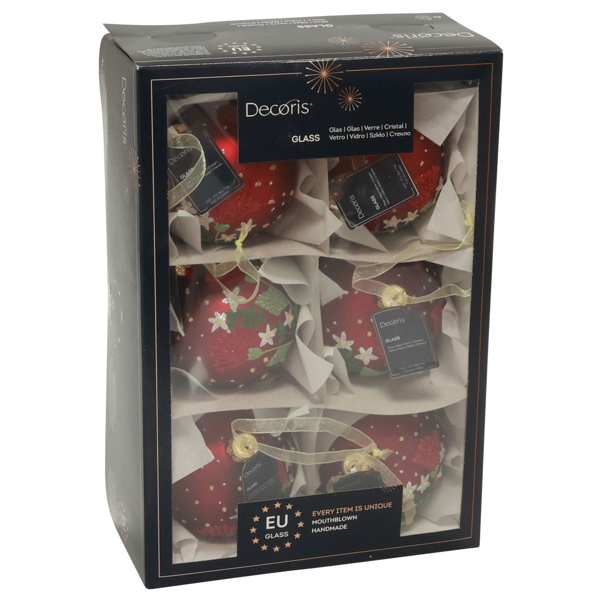 Karácsonyi labdák üveg piros karácsonyfa labdák réti Ø8cm 6db