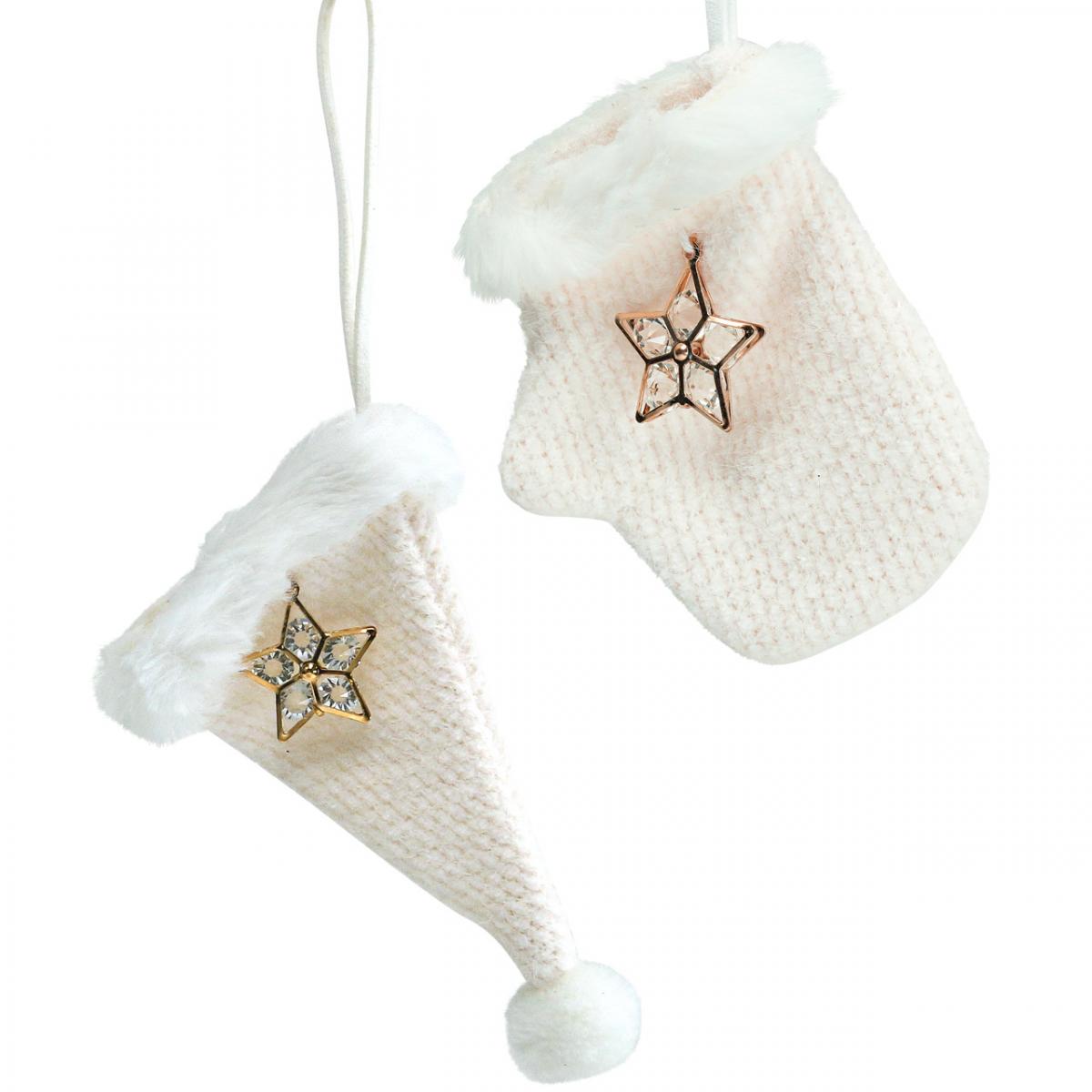 Termék neve: Karácsonyi medál filc kesztyű hegyes sapka krém 6 db