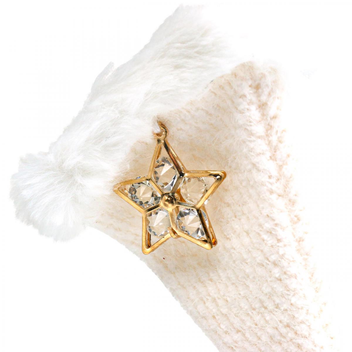 Összesen hat krémszínű karácsonyi dísz van: három kesztyű és három hegyes sapka. A karácsonyi dekoráció fehér filcszegéllyel és fehér szalaggal van felakasztva. Mindegyik medál kettős, ötágú arany tónusú csillagkészlettel rendelkezik, öt csillogó üvegkristállyal.