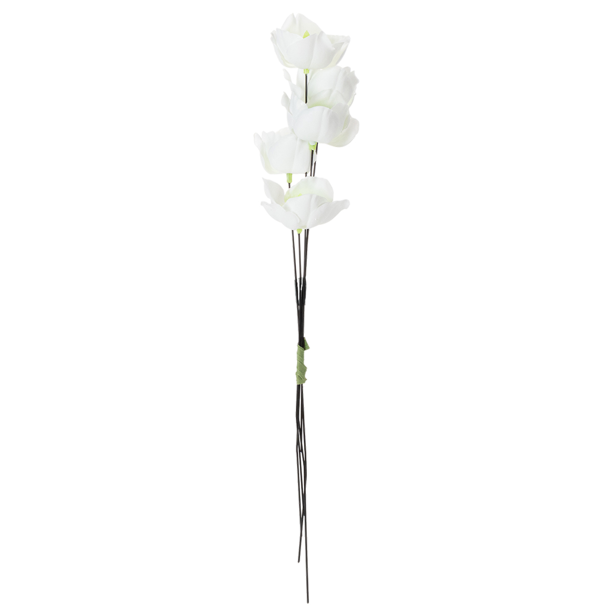 A dróton fehér színben készült mesterséges karácsonyi rózsát egy kötegben, összesen 50 darabban szállítjuk. A virágfej átmérője körülbelül 6 centiméter, a teljes művirág a dróttal együtt körülbelül 32 centiméter hosszú.