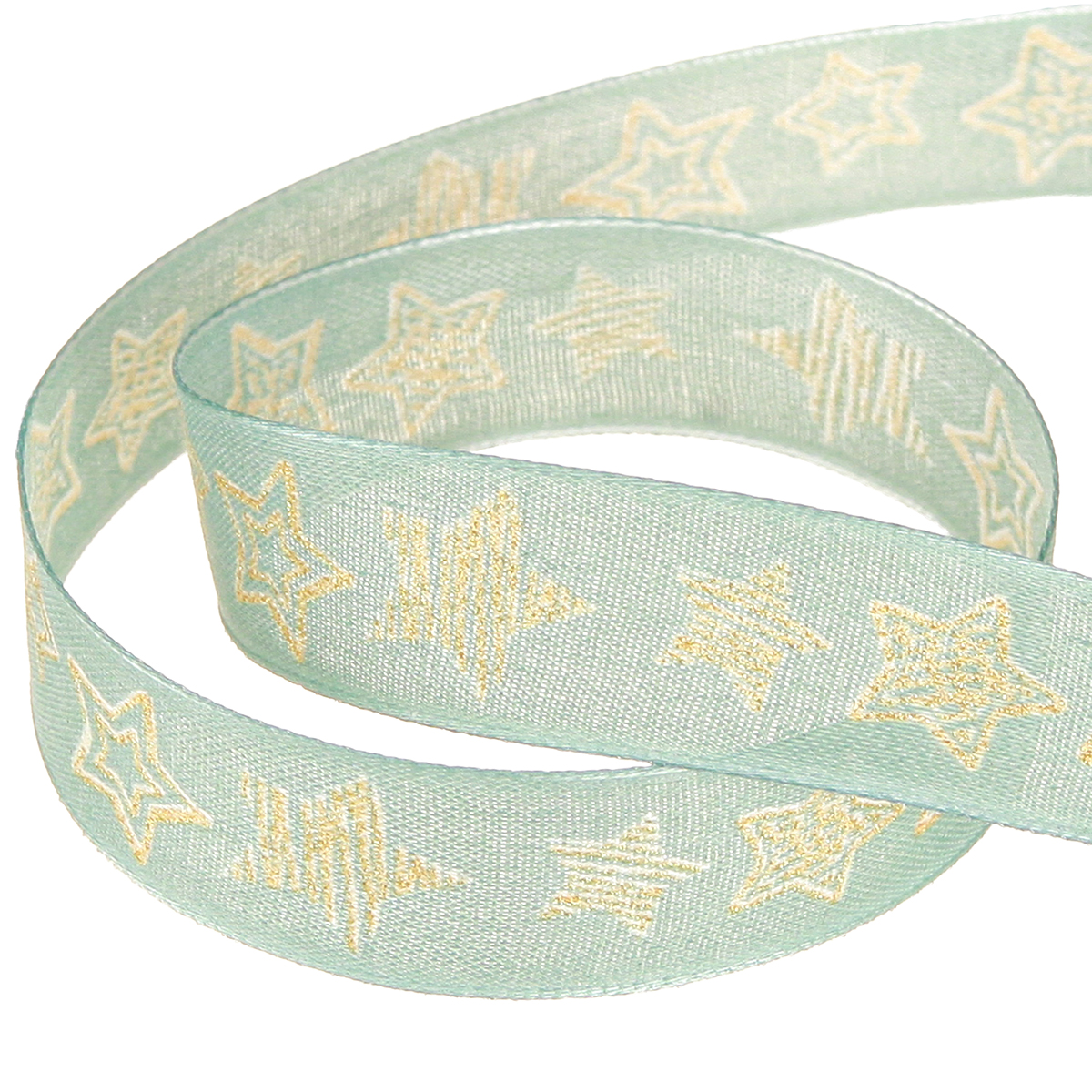 Karácsonyi szalag csillagok ajándék szalag türkiz 25mm 18m