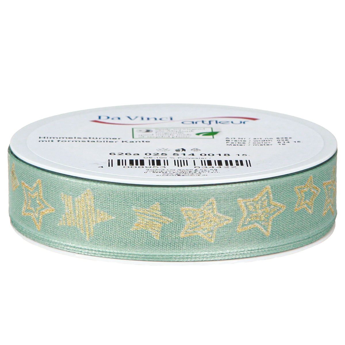 A zöld, ezüst csillagokkal díszített karácsonyi szalag gondosan kidolgozott és nyomott, és erős szegéllyel rendelkezik, hogy ne kopjon ki. A praktikus műanyag orsó kb. 25 mm-es szélességével és nagyjából 18 méteres hosszával elegendő anyaggal rendelkezik kreatív karácsonyi ötletei megvalósításához!
