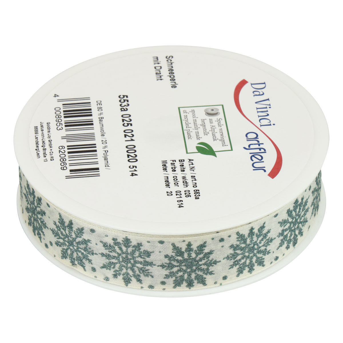 Termék neve: Karácsonyi szalag hópelyhekkel fehér zöld 25mm 20m