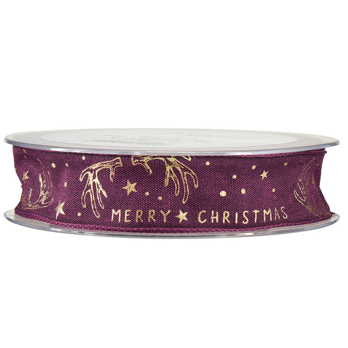 Karácsonyi szalag lila arany csillag agancs dekoráció W25mm L15m