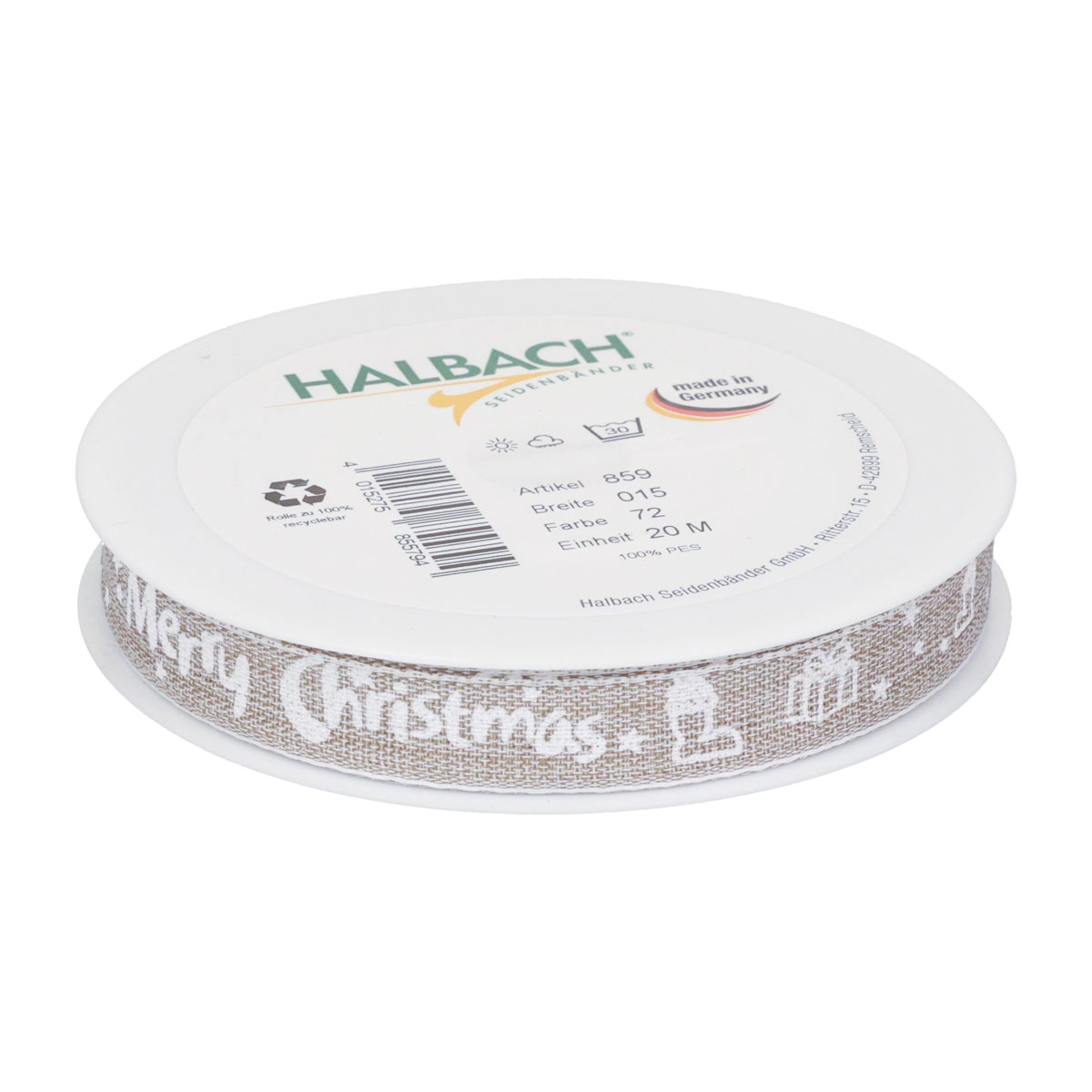 Karácsonyi szalag Merry Christmas Szalag Bézs 15mm 20m