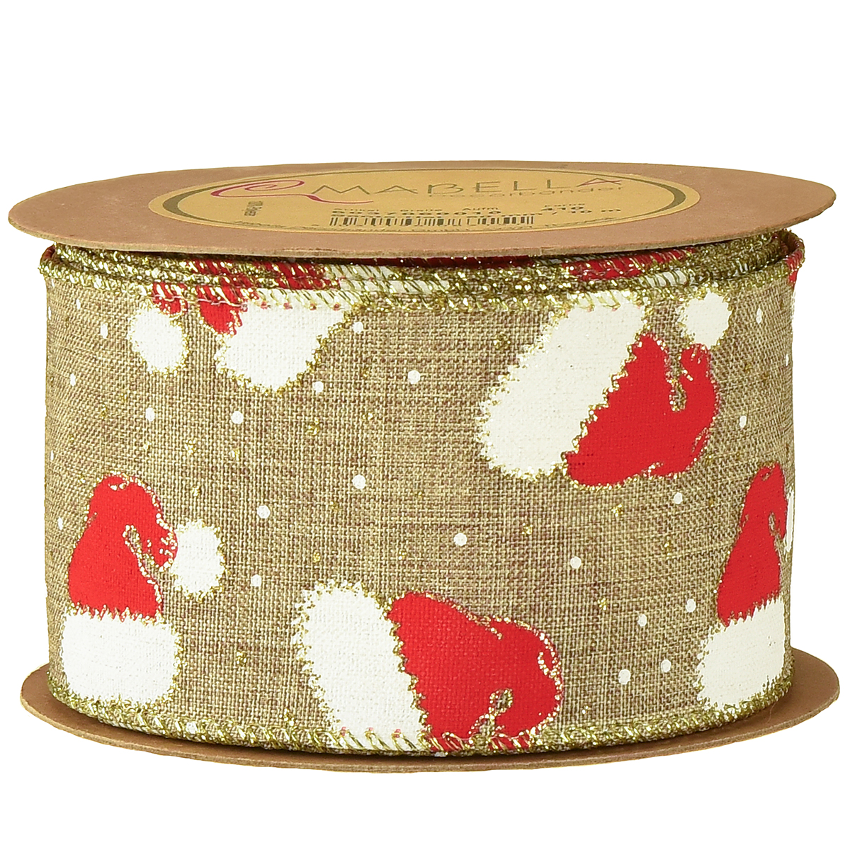 Karácsonyi szalag mikulás sapkával, barna, 60 mm, 10 m