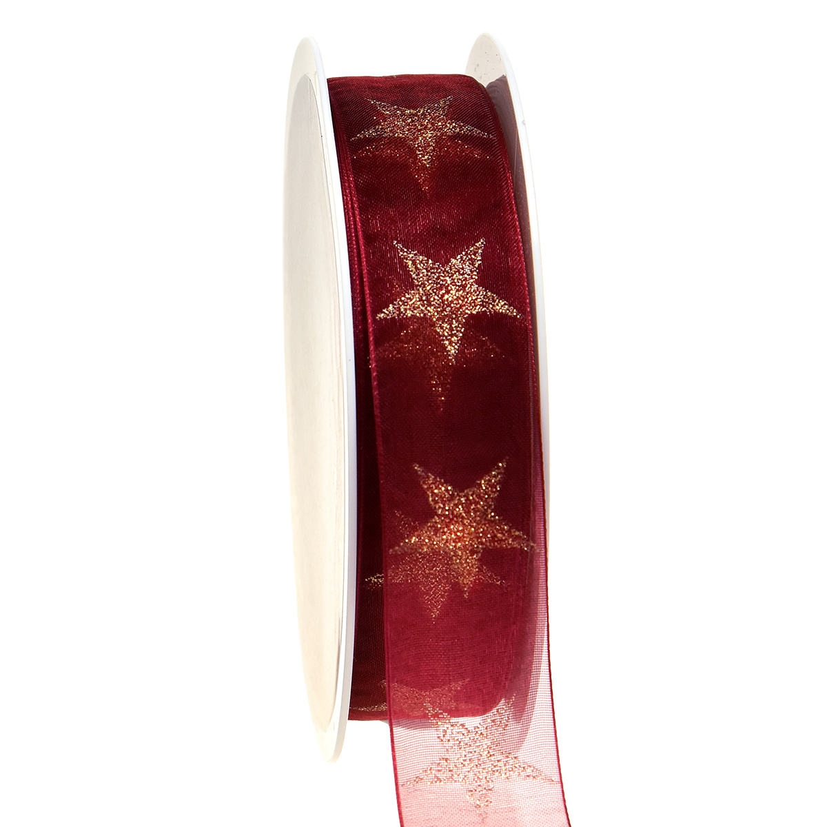 Karácsonyi szalag sötétvörös arany csillagokkal W25mm L18m