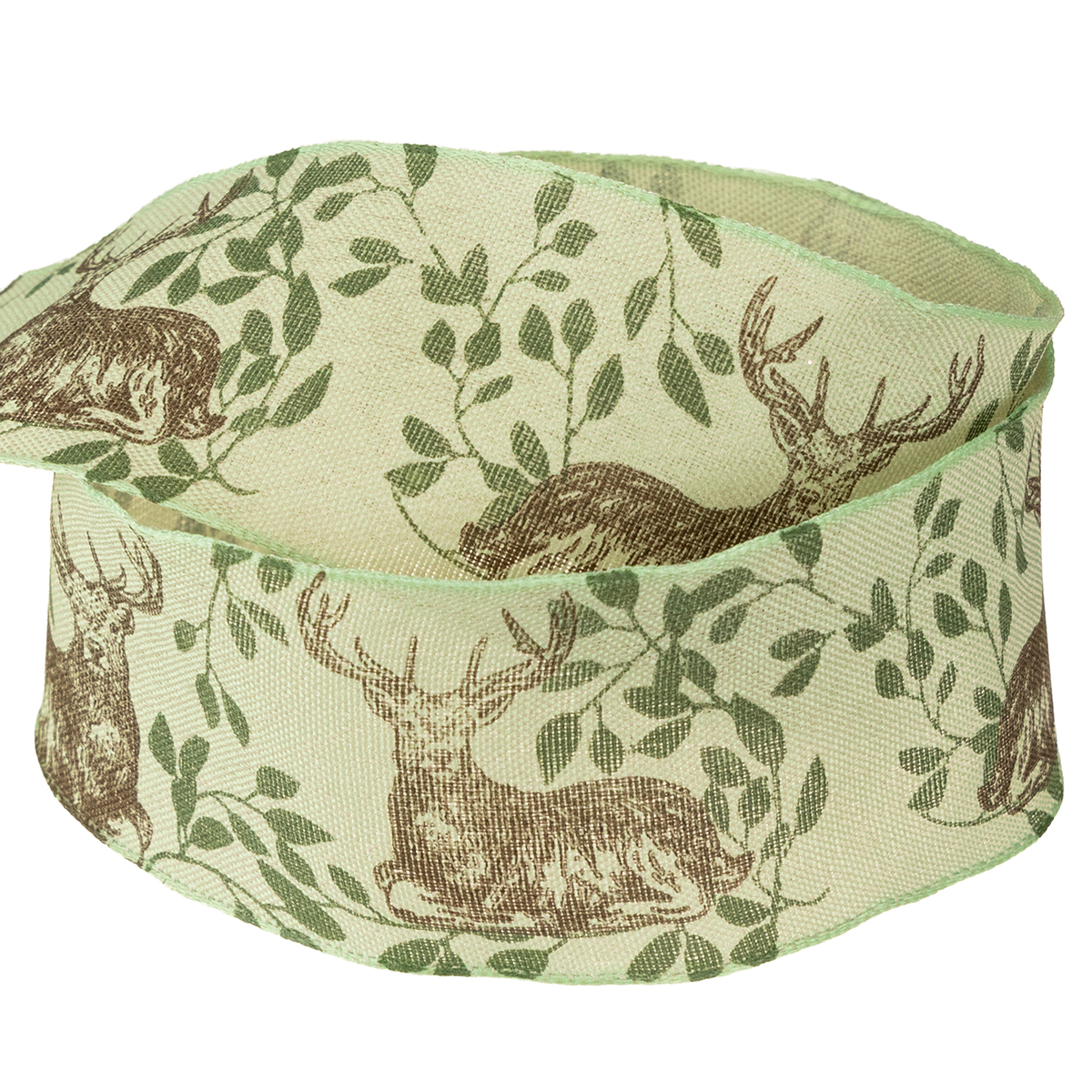 Karácsonyi szalag szarvas motívum szalaggal világoszöld 40mm 20m