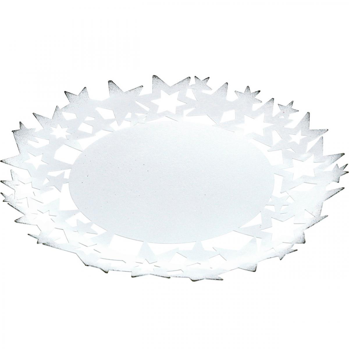 Karácsonyi tányér fém dísztányér csillagokkal, fehér Ø34cm