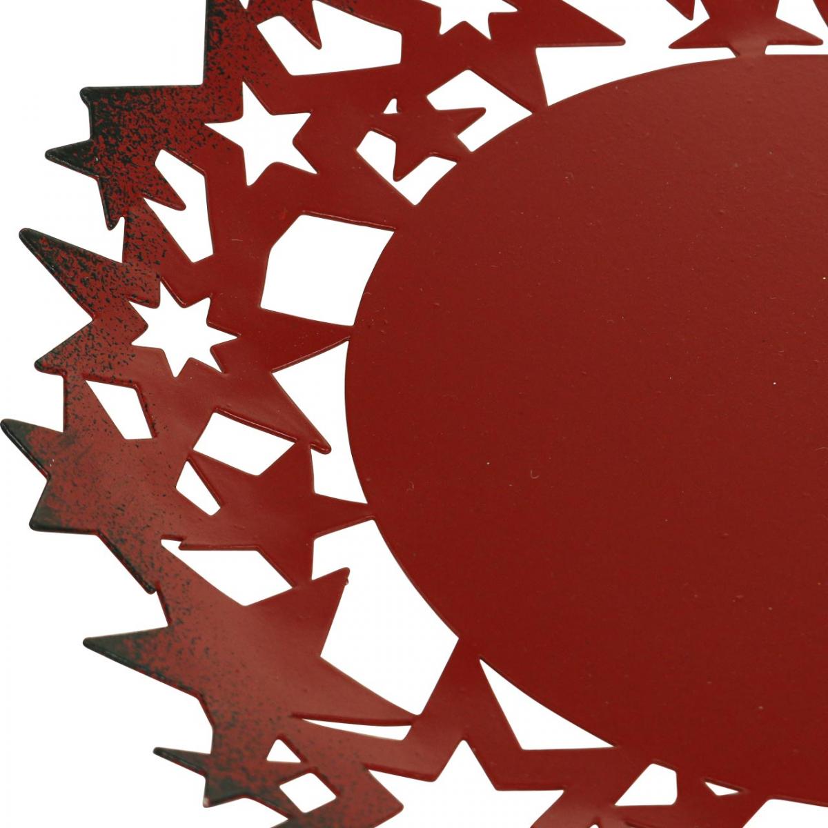 Karácsonyi tányér fém dísztányér csillagokkal, piros Ø34cm