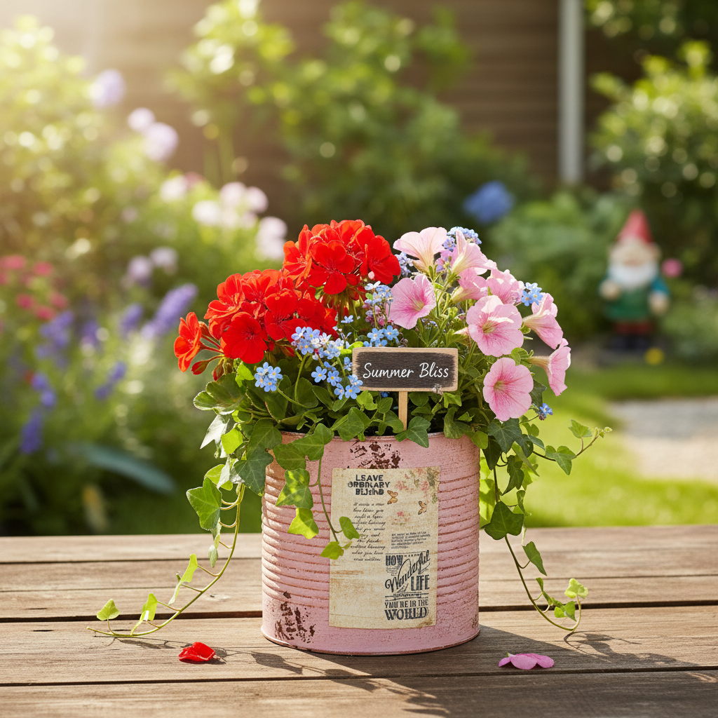 A sötétrózsaszín virágtartó vintage hangulatot visz a nyárba! A kerek virágcserép a permetezett rozsda hatásával és a finom pasztell színével azonnal felkelti a figyelmet az asztaldíszben vagy az ablakpárkányon. A fém díszdobozt az újrahasznosított konzervdoboz ihlette, de nincsenek éles szélei.