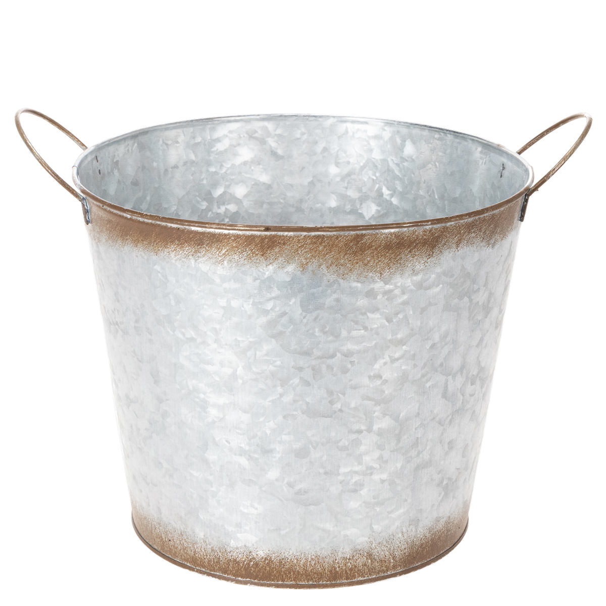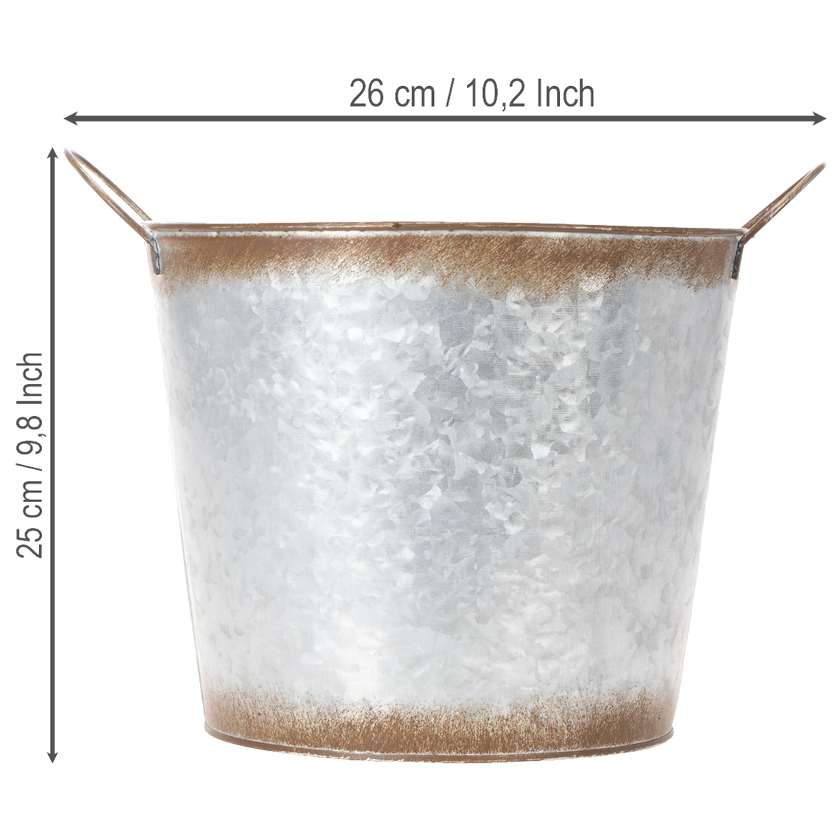 Ez a fogantyús növénycserép könnyen mozgatható és szállítható, és narancsvörös rozsdadíszítésű ezüst dekortálként varázsol el.