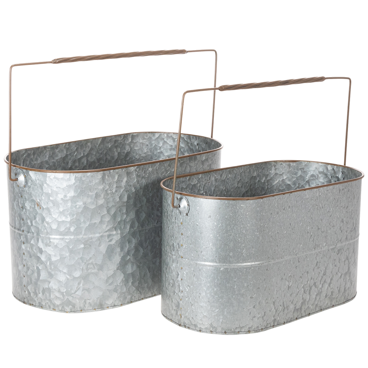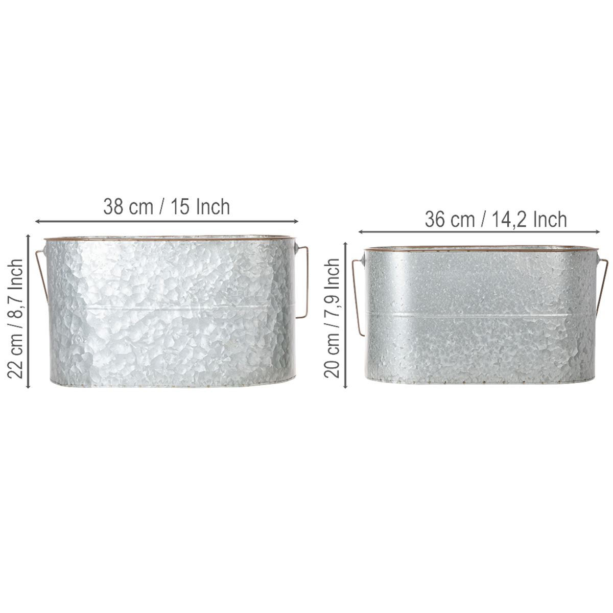 A fogantyús növényi tálak kiváló minőségű fém edények, melyek sok alkalomra használhatók. Az ezüst színű, barna szélű, hosszúkás fémvödrök igazán nagyszerűek ültetőgépnek vagy cachepotnak!