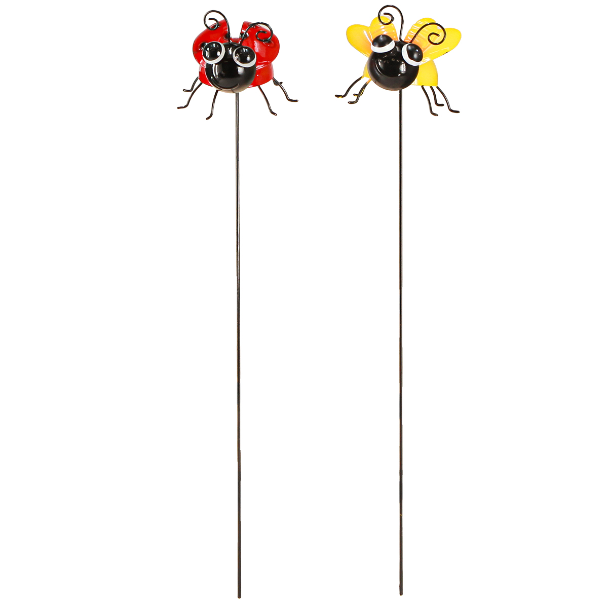 Katicabogár és méhecske bottal Kertdísz fém 46cm 2db