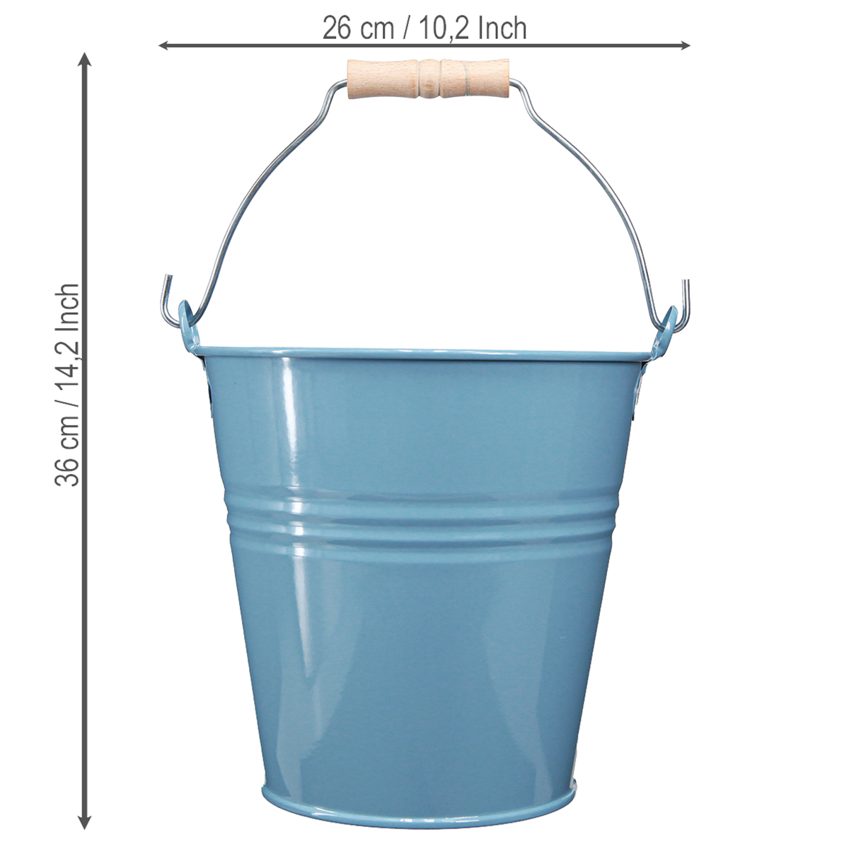 Fedezze fel a bájos dekoratív vödröt időtlen kék színben. Fémből készült cserepként elegáns könnyedségével és robusztus minőségével nyűgöz le. Fából készült fogantyúval ellátott, a funkcionalitást a dekoratív vonzerővel ötvözi, így ideális belső és külső dekorációhoz.