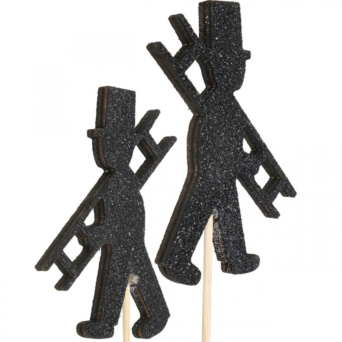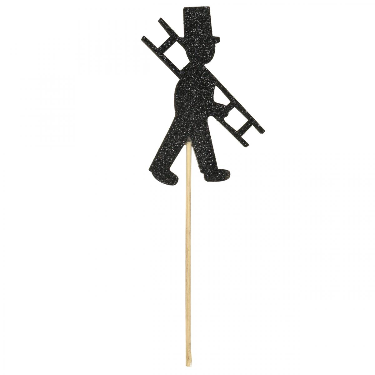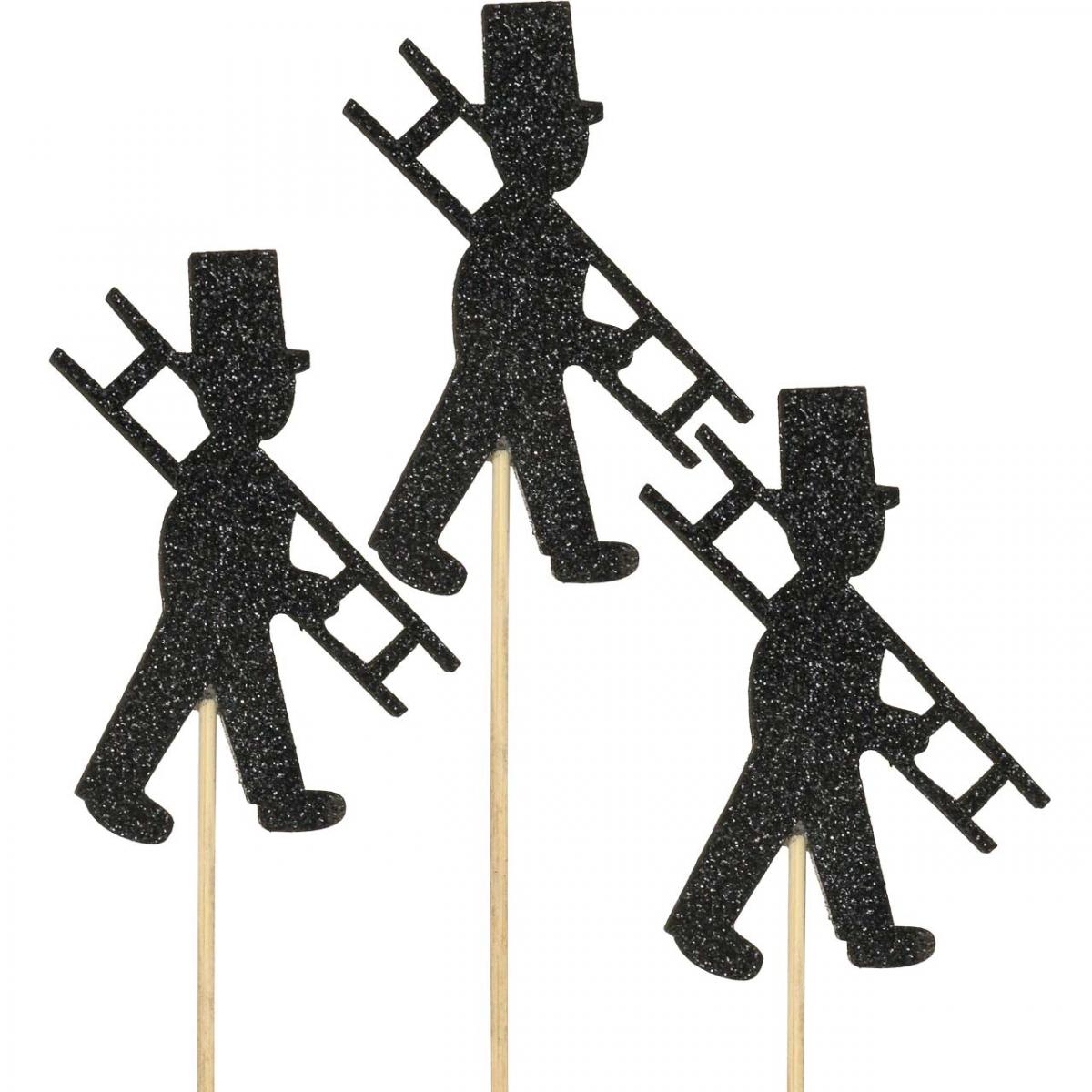 A szilveszteri dekoráció 24 db kis kéményseprőből áll egy fapálcán. A dekoratív figurák egy kéményseprő sziluettje létrát hordozó cilinderben. A virágdugók elegáns fekete színűek, csillámmal, ami enyhe csillogást ad.