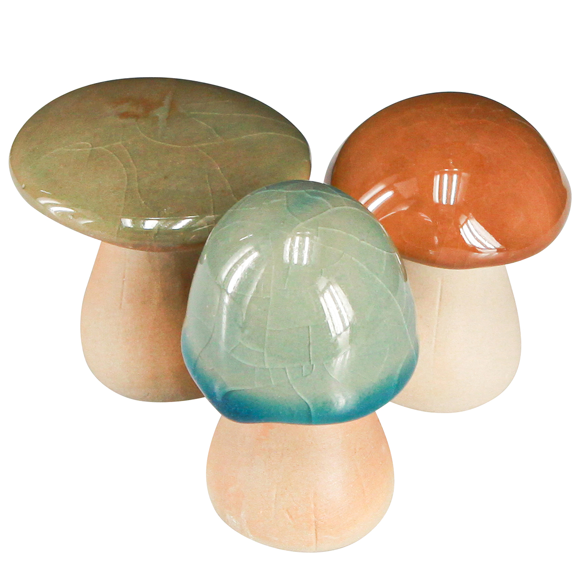 Kerámia gomba dekoráció barna zöld kék őszi dekoráció H6-7,5cm 3 db