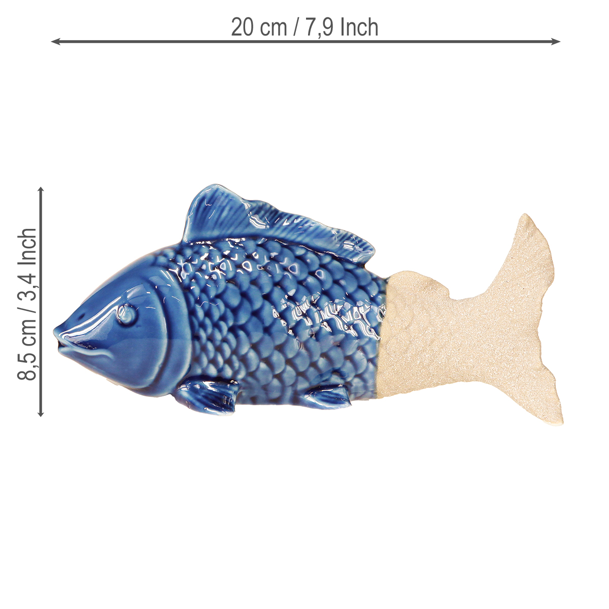Termék neve: Kerámia hal dekoráció Tengeri kék bézs 20×8×8,5cm 2 db