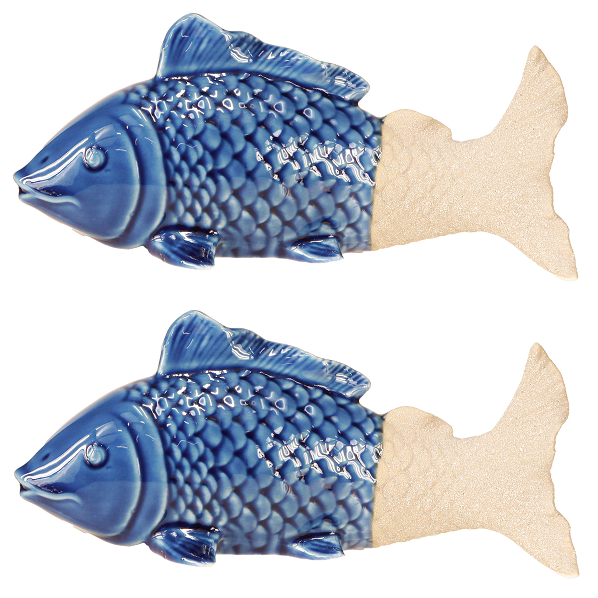 Kerámia hal dekoráció Tengeri kék bézs 20×8×8,5cm 2 db