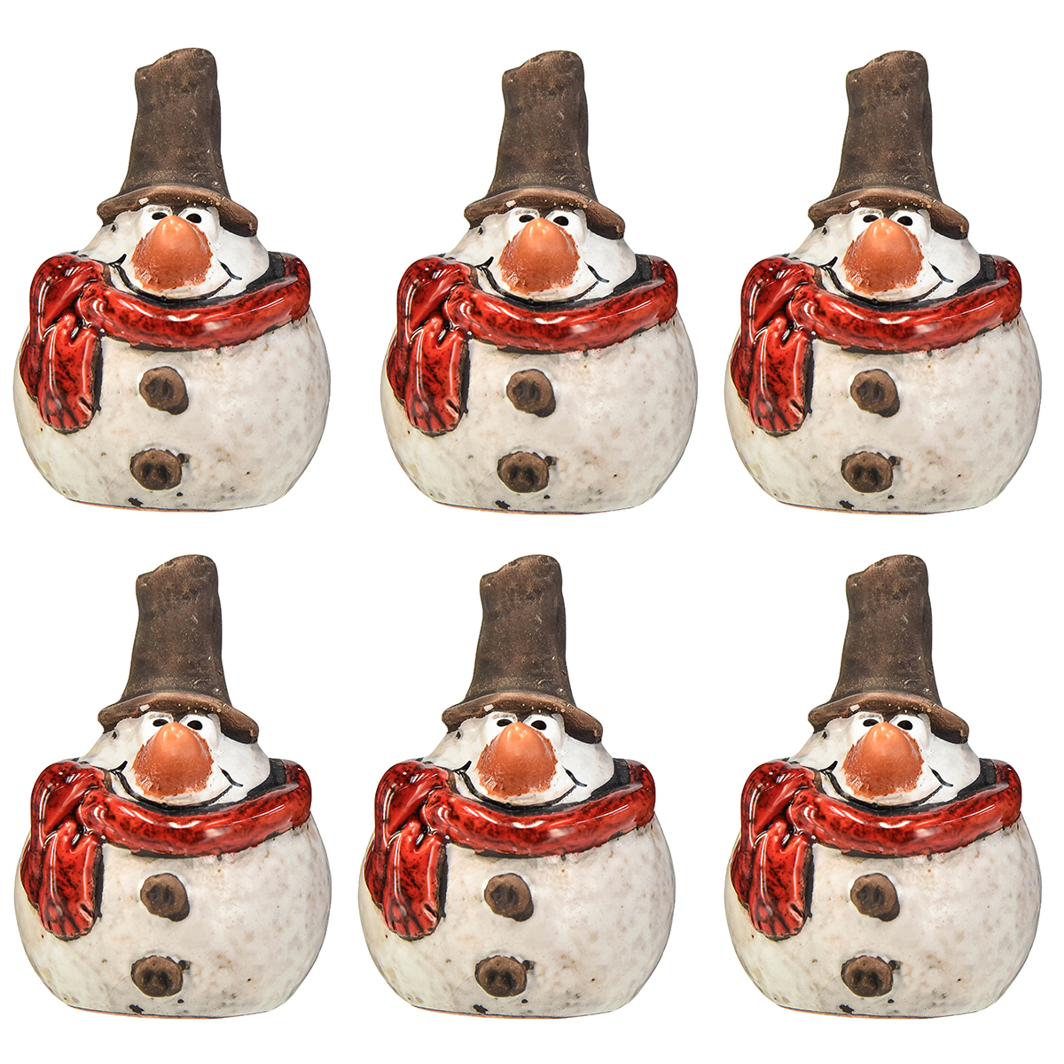Kerámia hóember figura, fehér, 6,9cm – téli karácsonyi dekoráció – 6 db