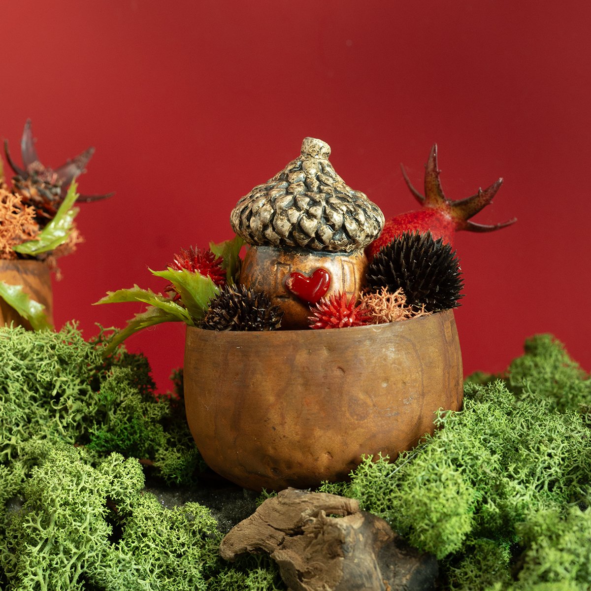 Teremts első osztályú őszi hangulatot a dekoratív makkal. Az őszi kerámiafigurák hangulatos órák színpadává varázsolják otthonát. A dekoratív makk szívmotívuma a hab a tortán, tükrözi a természethez való kötődést és a részletekre való odafigyelést.