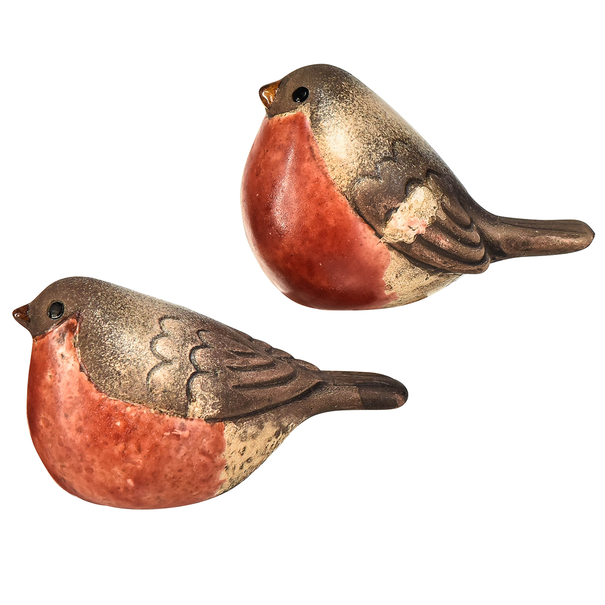 Kerámia Robin figurák - piros és természetes tónusok, 5,4 cm - tökéletes kertben és otthonban - 4 darabos csomag