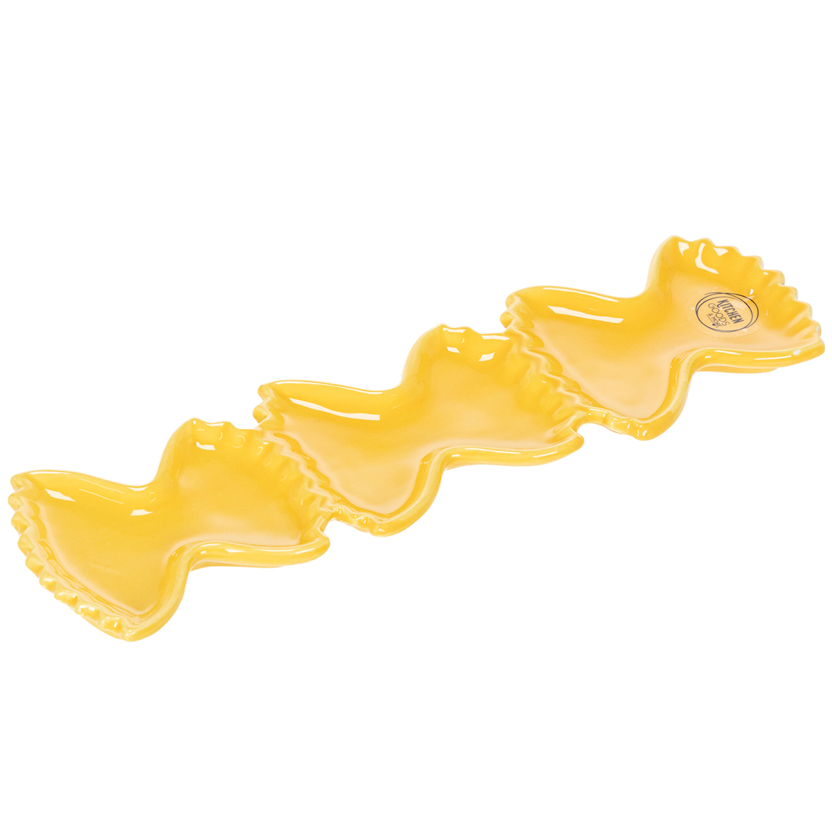 Vásároljon egy sárga kerámia mártogatós tálat: Stílusos tálalási megoldás tészta formájában.