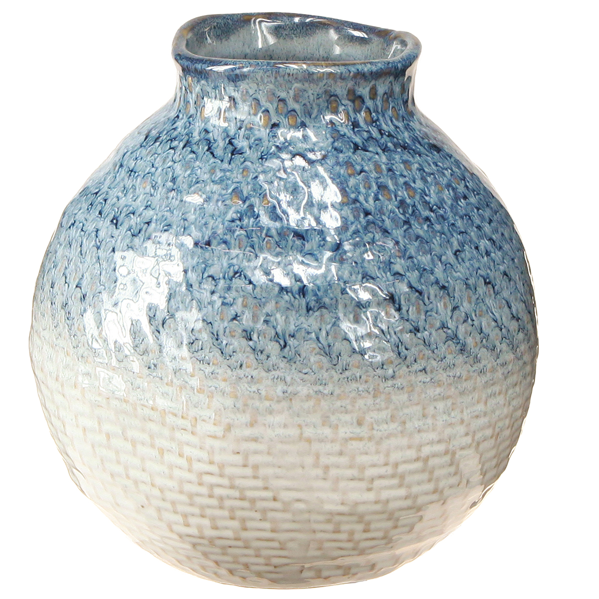 Kerámia váza mázas kék-fehér fonott megjelenés H18,5cm