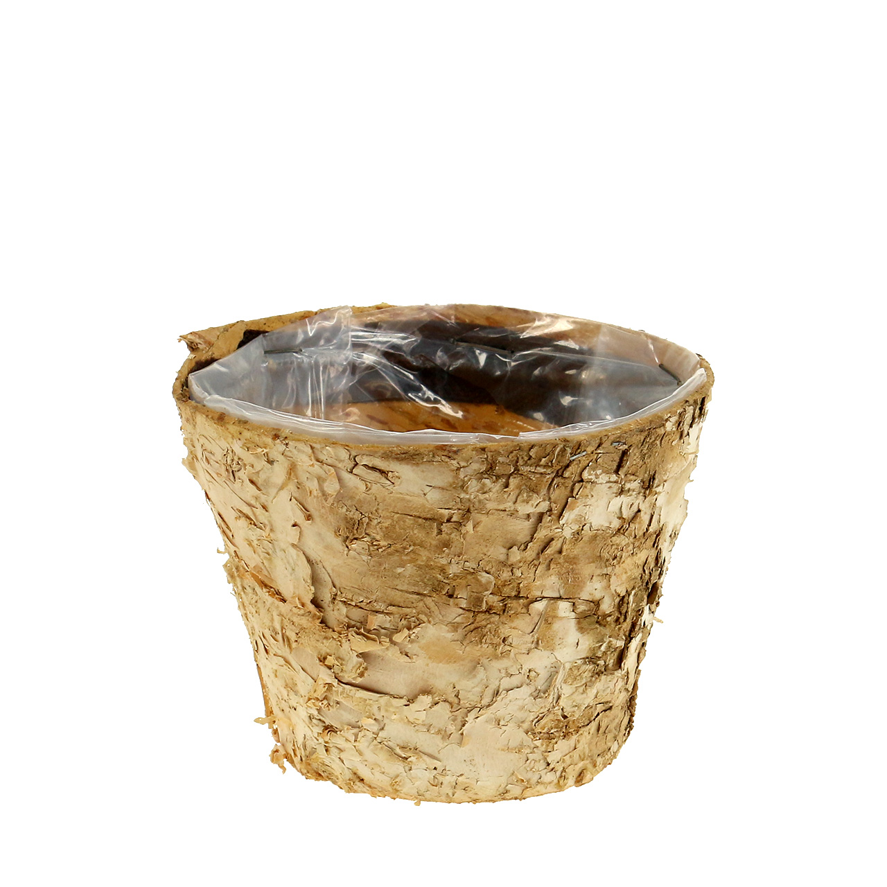 Kerek virágcserép, natúr díszítésű, kérges nyírfa, Ø12cm, M10cm, 5 db