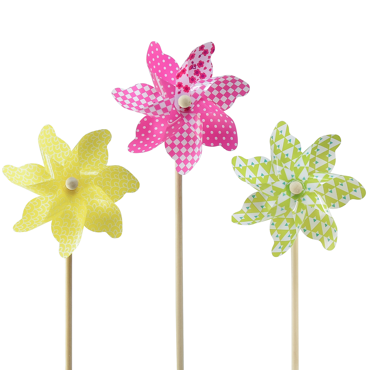 Kerékes Pink Sárga Zöld Szélmalom Balkon Dekoráció Ø15cm 3db