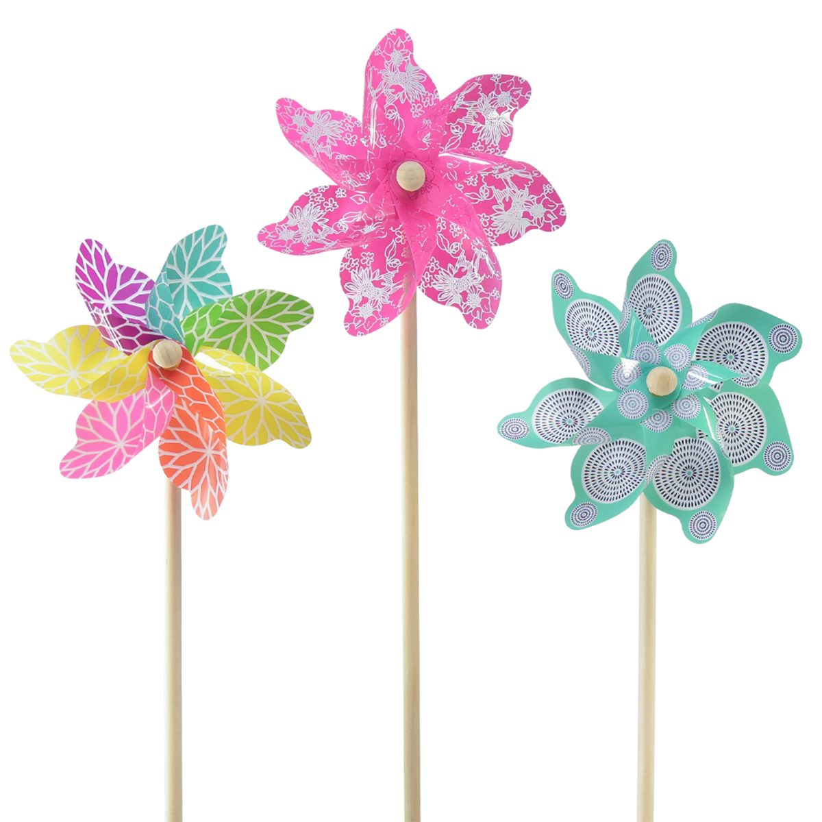 Összesen 3 szélturbinát kap, amelyek mintázatában és színében különböznek egymástól. Az egyik szélmalom rózsaszín és részben átlátszó virágmintával díszített. A türkiz keréken fekete-fehér körök vannak, a harmadikon pedig minden levél más-más színű, fehérrel szegélyezett nagy virággal.