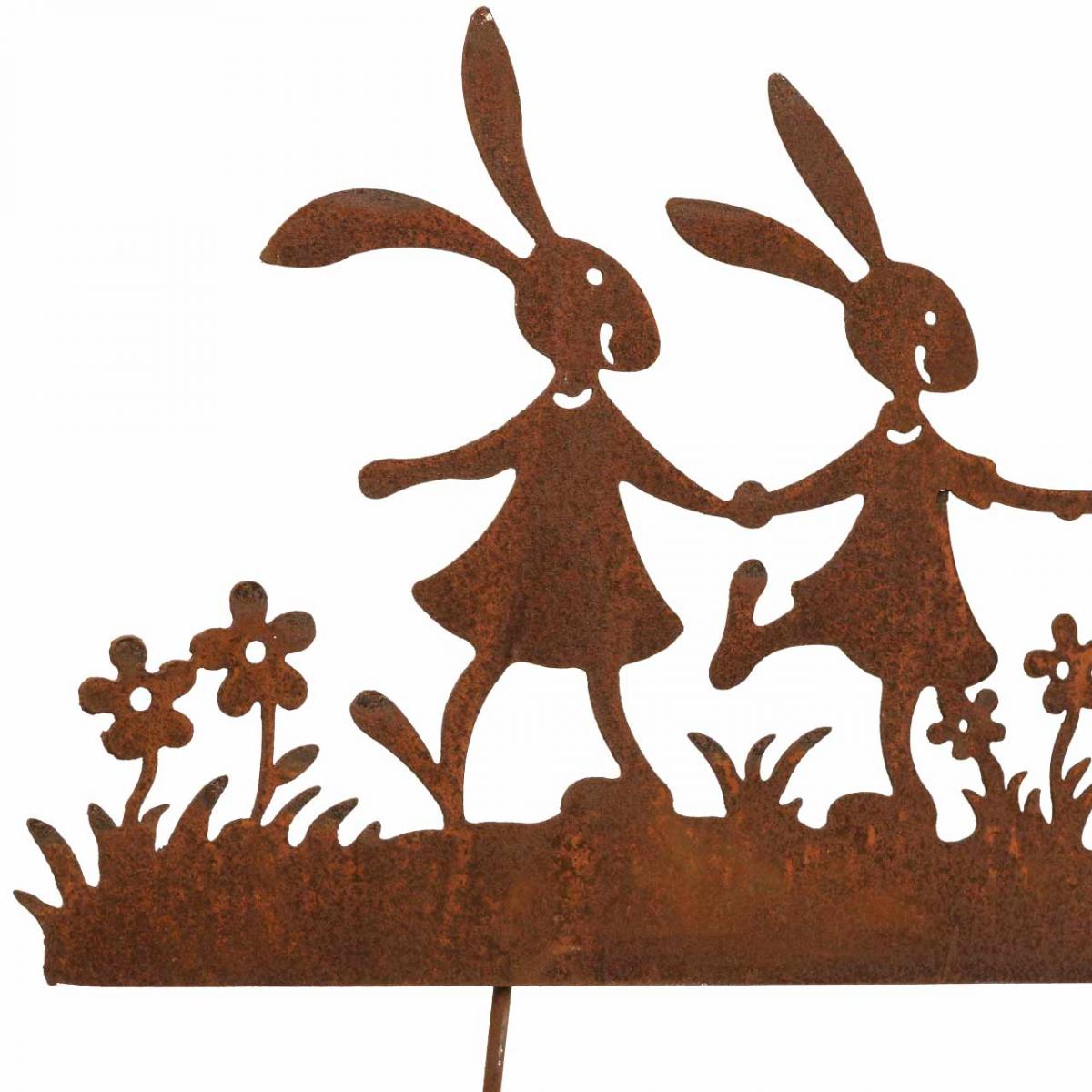 Kerti karó rozsda Húsvét, virág karó nyúl fém Sz40cm
