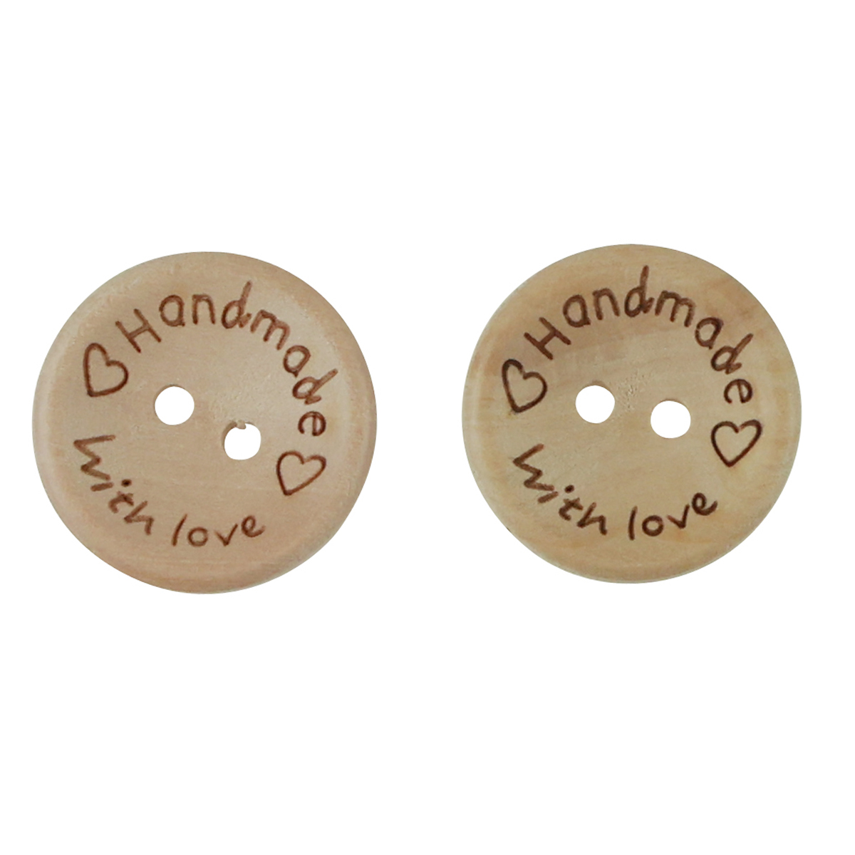 Kézműves kellékek gomb fa gomb felirattal Ø2cm natúr 220 db