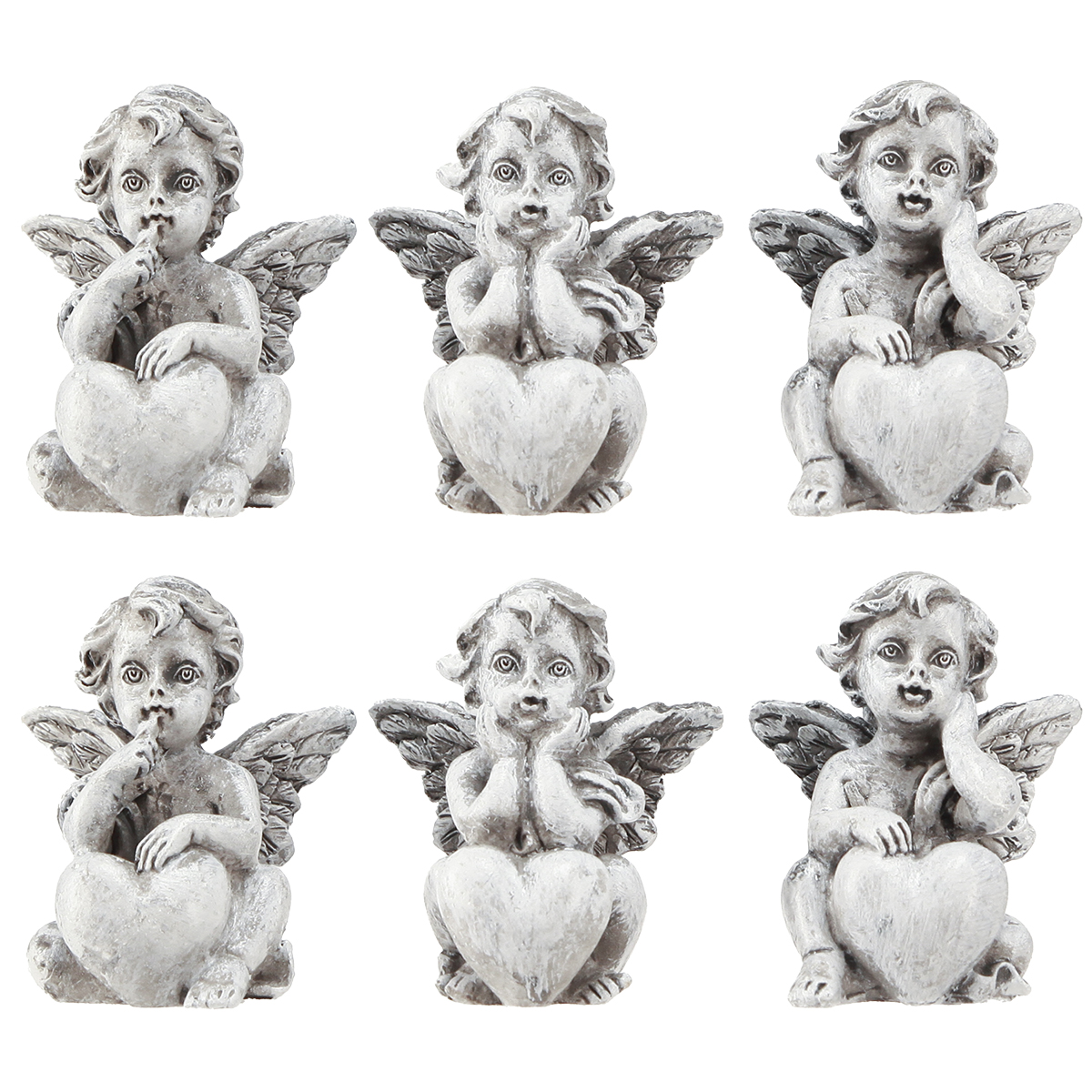 Termék neve: Kis angyalka szív sírdísz figurával szürke H5,5cm 6 db