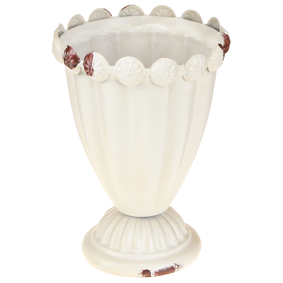 A krémfehér mini trófea dekoratív éllel rendelkezik, amely egyedileg rögzített díszekből áll. Ezek egy virághoz hasonlítanak, ami szinte meghívja, hogy virágokkal díszítse őket.