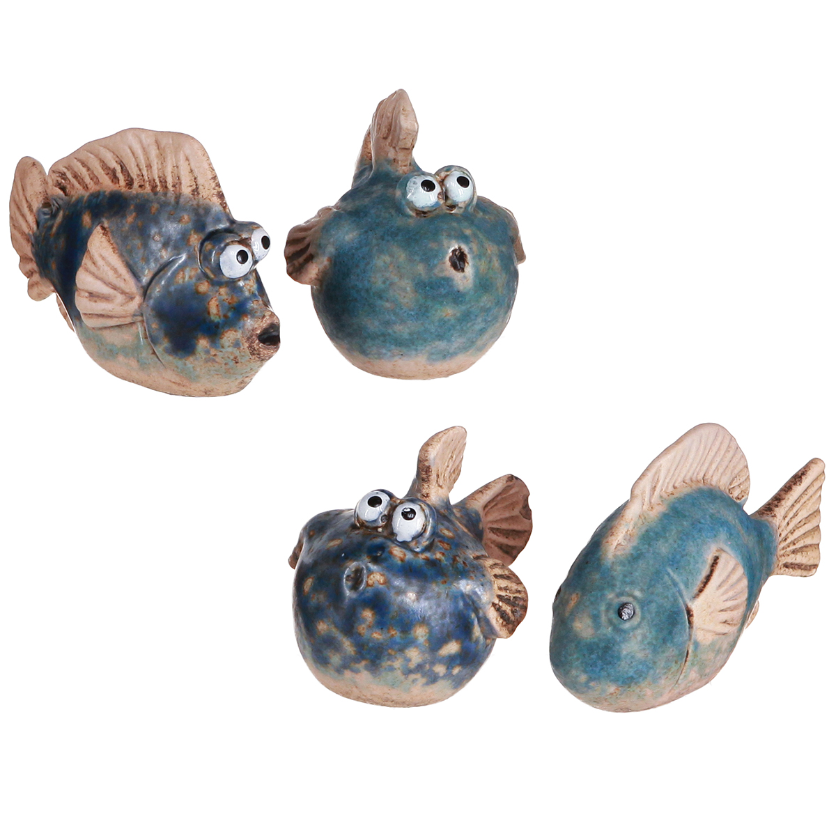 - Négy különböző vicces hal, kézzel készített kiváló minőségű kerámiából