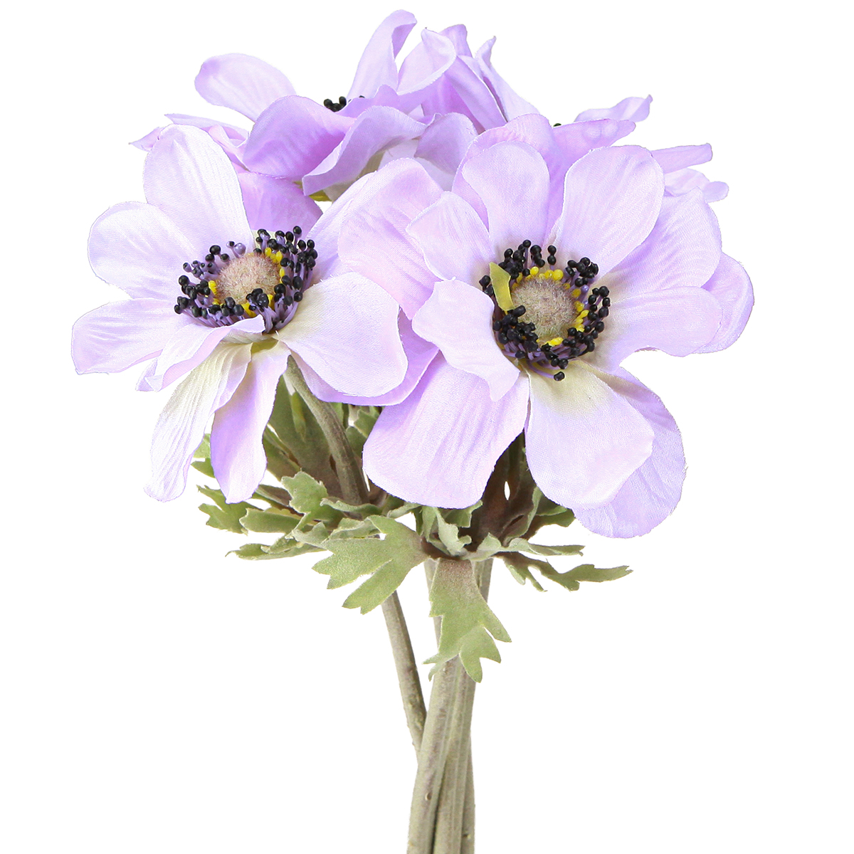 Ezek a lila kökörcsin művirágok ideális színfoltok minden dekorációs ötlethez. A mesterséges kökörcsin szelíd eleganciát és egy kis frissességet kölcsönöz a belső térnek. A kiváló minőségű műselyemből készült finom lila szirmokon sötétlila porzók és sárgás, pelyhesített közepük van, amelyek ügyesen utánozzák e műkerti virágok természetes varázsát. A zöld, enyhén érdes, rugalmas fémmaggal ellátott szárnak köszönhetően a kökörcsin egyedileg formázható, így korlátlan kreatív lehetőségeket kínál virágdíszítésében.