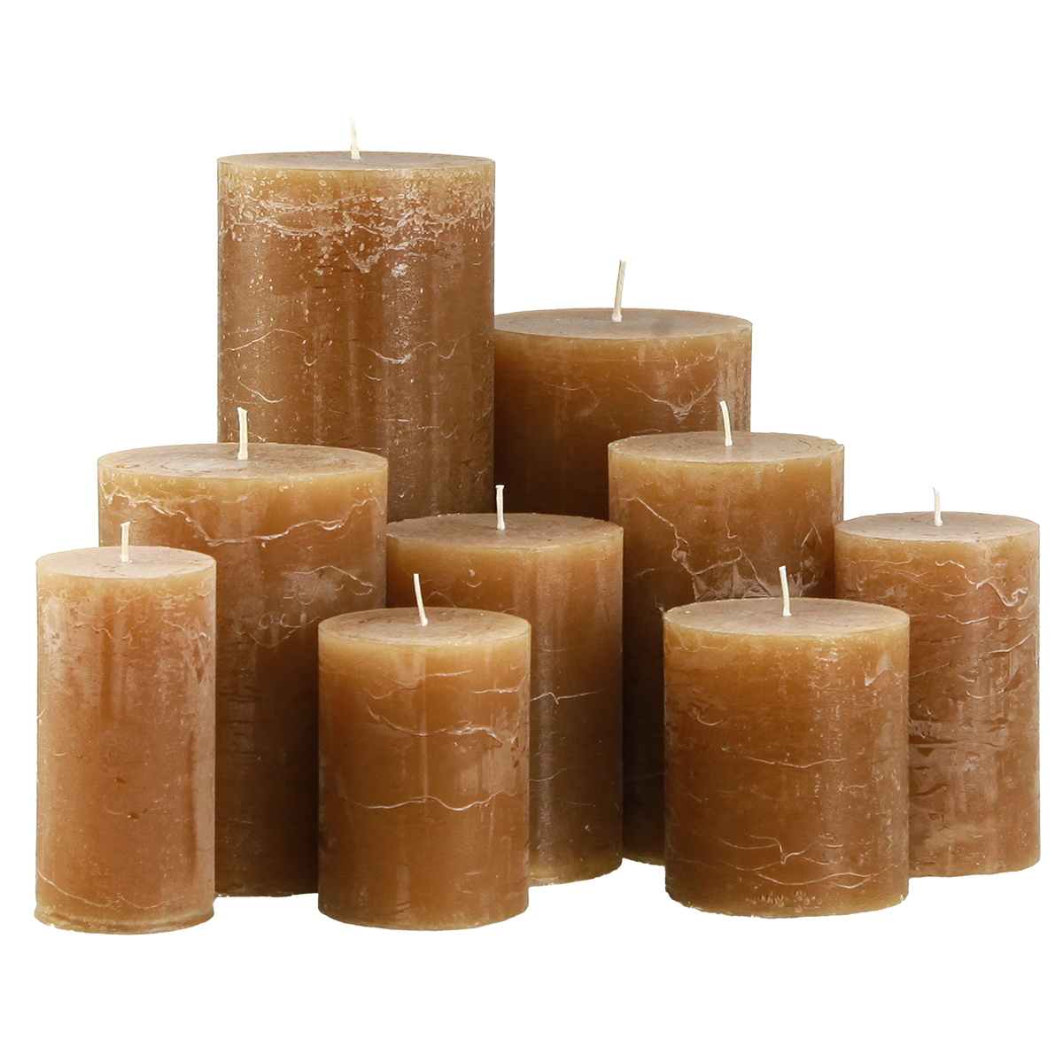 - Egyszínű oszlopgyertyák karamell színben