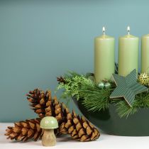 A repertoárunkban szereplő kúpok természetesek, fehérítettek vagy színesek. A csapok díszítőelemekhez is cserélhetők. Vágja a kúpokat egy bizonyos formára, vagy permetezze be a kúpokat dekoratív spray-inkkel, hogy színes vagy csillogó hatásokat kapjon. Attól függően, hogy adventi koszorúhoz, karácsonyi dekorációhoz, sírdíszhez vagy egyéb dekorációhoz kúpokat használsz, számtalan tervezési lehetőség áll rendelkezésre a virágüzletek és a hobbibarátok számára. A tobozok nélkülözhetetlenek a szárított virágkötészetekben is. Rendeljen kúptípusokat egyenként vagy vegyes kúp választékban.