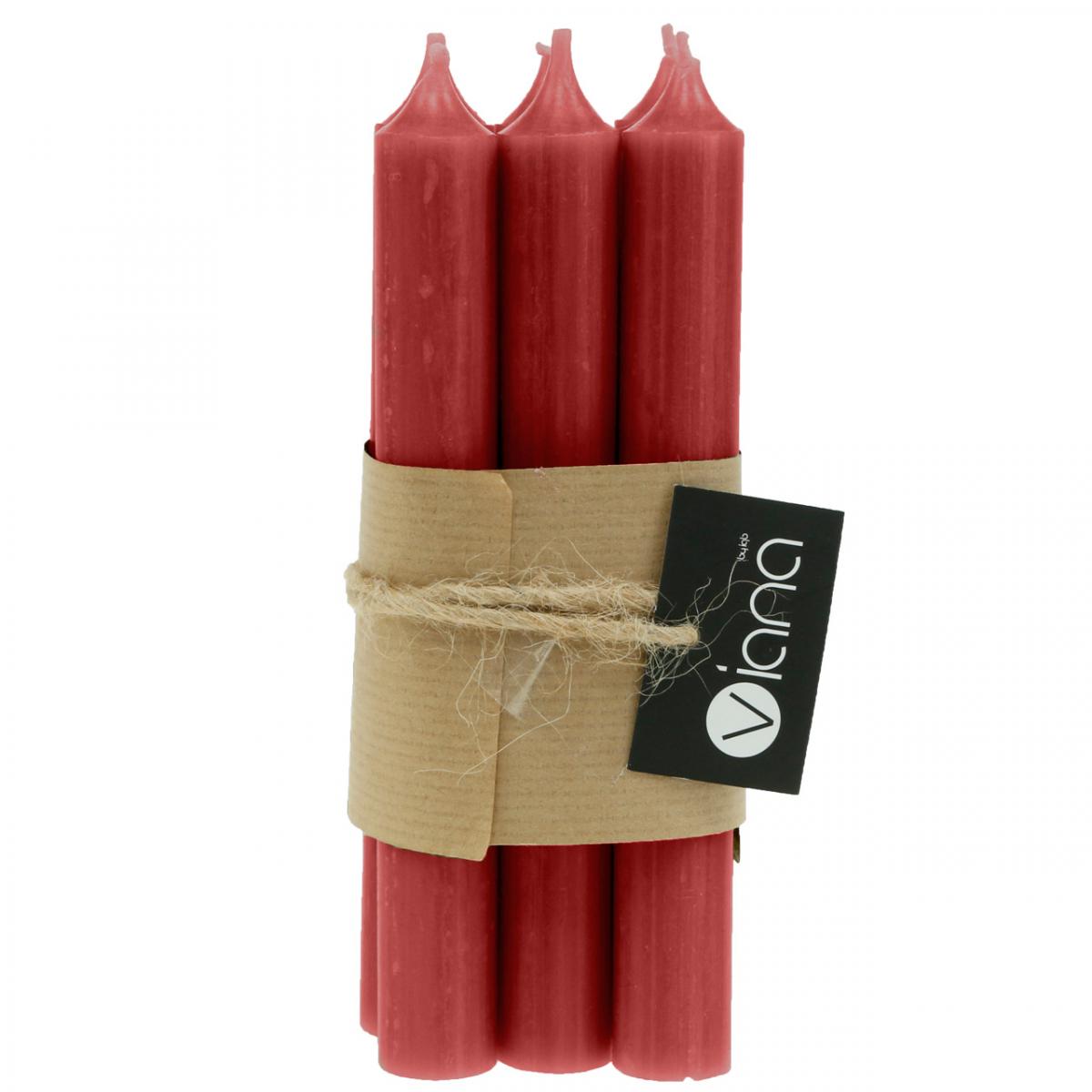 Kúpos gyertya piros egyszínű gyertyák rubinvörös 180mm/Ø21mm 6db