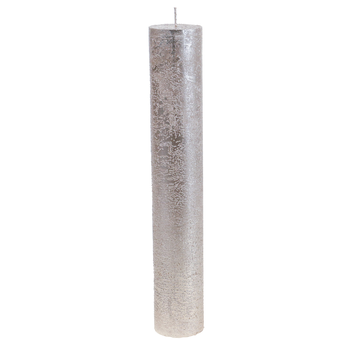 Kúpos gyertyák nagy platina mintás csillám Ø50×H300mm 4 db