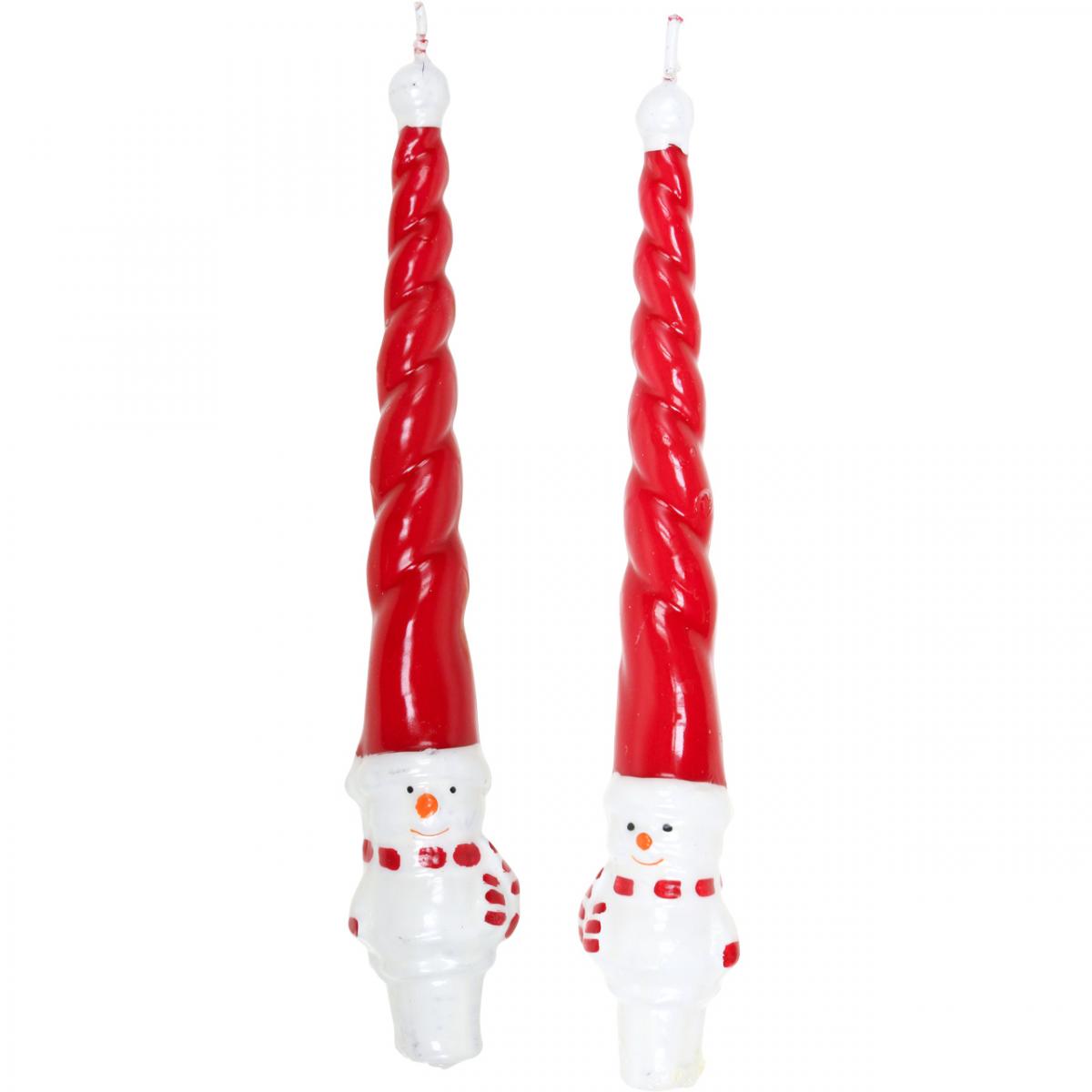 Kúpos hóember gyertya karácsonyi piros 26cm 2db