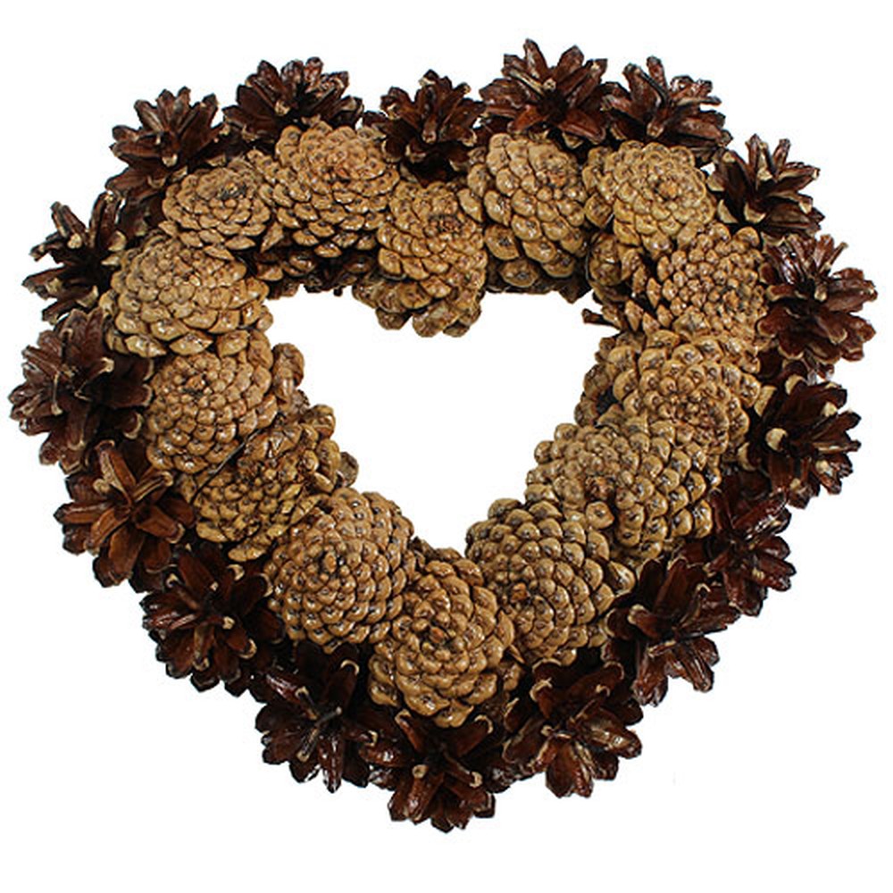 A lapos kúpszív fenyőtobozokból áll, amelyek elöl festettek, hátul természetesek, és erős dróttal tartják össze őket. A szív teljes átmérője körülbelül 30 centiméter, és körülbelül 6 centiméter magas.