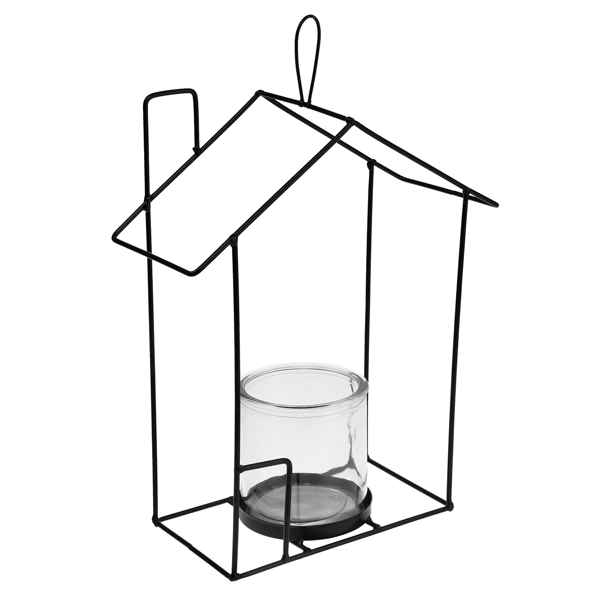 Helyezzen egy oszlopgyertyát a gyertyatartóba, és használja a kis házat, hogy feldobja nappaliját. A tetőn lévő fűzőlyuk segítségével könnyen felakasztható a függő dekoráció.