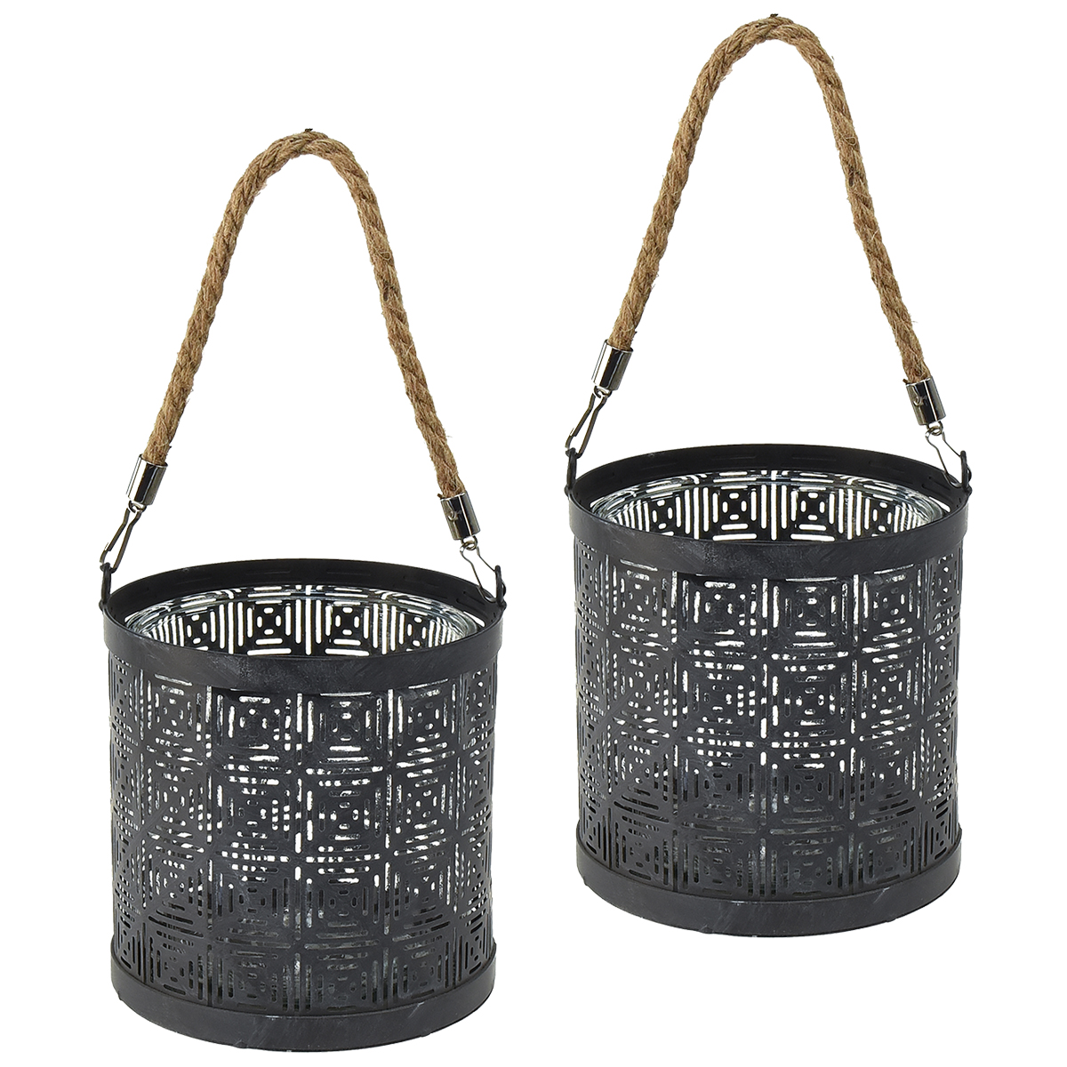 Világítsa meg otthonát vagy kertjét ezzel a kétrészes antracit lámpás készlettel. Ez a stílusos dekoratív fémlámpa antik megjelenésével és filigrán mintájával varázsol el, amely egyedi fényhatásokat hoz létre. Akár asztaldíszként nyári bulikon, akár lágy fényforrásként a nappaliban – ez a fogantyús fém lámpa minden környezetben hívogató hangulatot teremt.