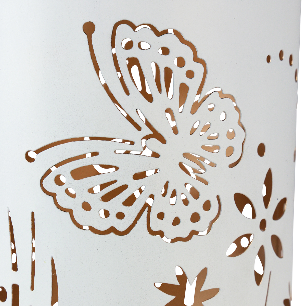 Egy nagy oszlopos gyertya vagy egy széles tealámpa könnyedén felállíthatja a lámpást. Gyújtsa meg a gyertyát, és az aranyszínű felület hatékonyan tükrözi a gyertyafényt. A gyertyafény pillangók és virágok formájú kivágásain át az erkélyen, a nappaliban vagy a teraszon lévő asztalra világít.
