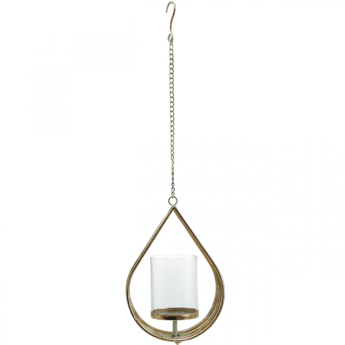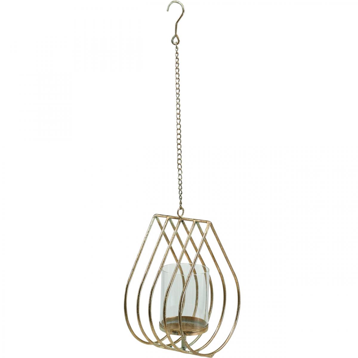 Termék neve: Lámpás függő teamécses tartó fém arany könnycsepp H22,5cm