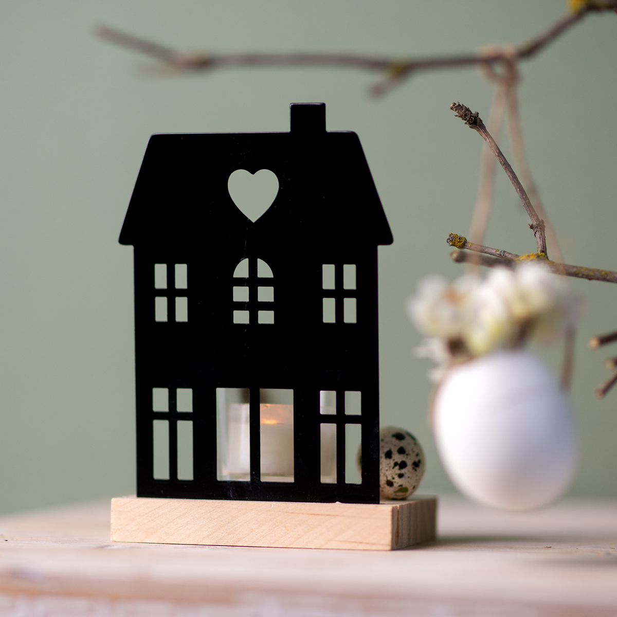 Termék neve: Lámpás ház fém fekete fa talppal H15cm 2db