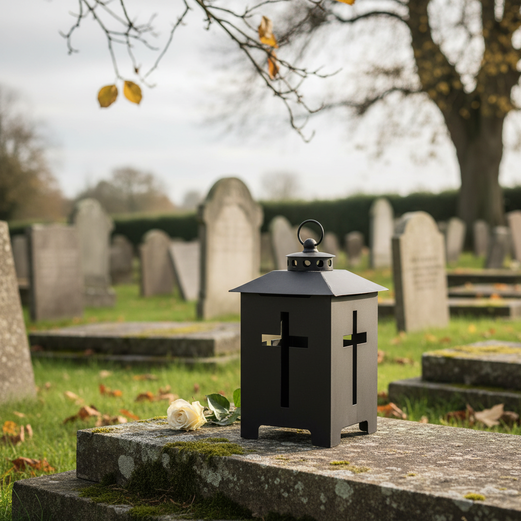 - Fémes sírlámpa keresztekkel az értelmes szimbolizmusért